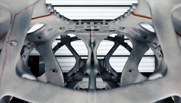“薩博和Divergent的聯(lián)合設(shè)計(jì)團(tuán)隊(duì)挑戰(zhàn)了飛機(jī)制造領(lǐng)域的許多傳統(tǒng)觀念。得益于增材制造技術(shù),承重結(jié)構(gòu)不再需要像肋條和翼梁那樣遵循直線和直角,而是可以有機(jī)地遵循最佳載荷路徑。作為人類,這是不可能繪制出來的;它們必須由優(yōu)化和人工智能算法生成,”Axel解釋道。